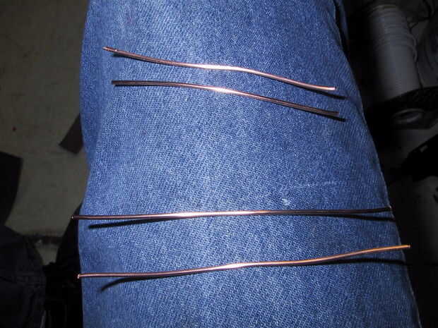 Cortar cables como se muestra en la imagen, dos más cortos y dos largos. Asegúrese de que los cables están por lo menos una pulgada más larga que la distancia entre los agujeros que deben ir.