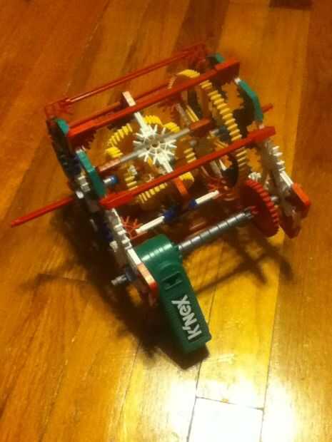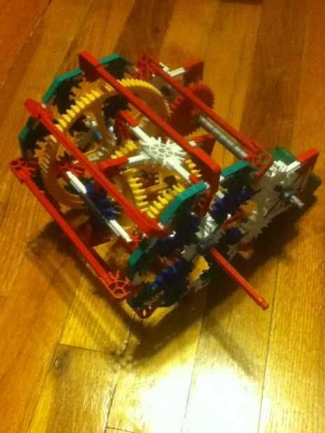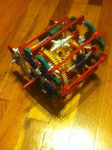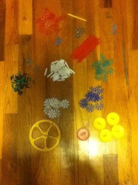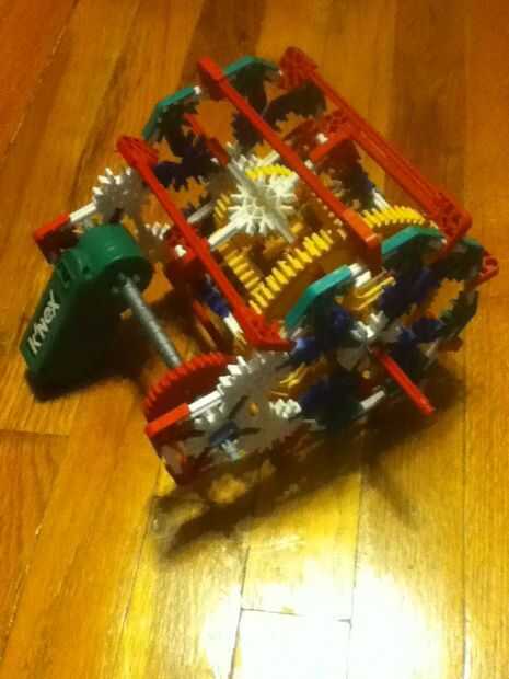 diferencial ha formado. No el más pequeño, pero aún fresco. Lista de partes: 4 engranajes de esquina, 1 engranaje Normal (o rincón) 1 engranaje grande, barras pequeñas de 36 negro/verde, 39 barras blancas, 9 barras rojo, barras amarillo 1, 1 barra larga gris/negro, 10 conectores azules, 2 conectores gris, 26 conectores rojo, 12 conectores blanco, 12 conectores verdes, 6 separadores azules, 12 separadores gris, 6 extremos azul, 1 Motor
