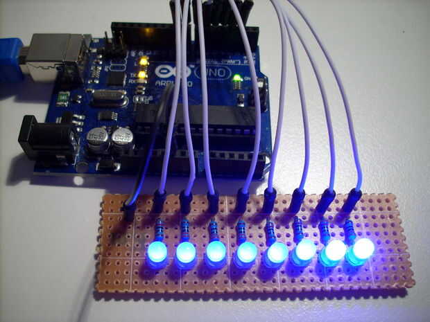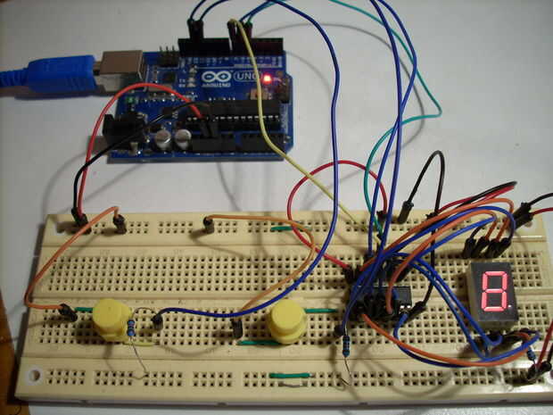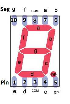 Las pantallas LED de 7 segmentos cátodo común y el registro de desplazamiento es un 74HC595. He incluido una foto de los 7 segmentos LED de la parte delantera que muestra la relación entre los números y el correspondiente segmento del LED que controla el pin.