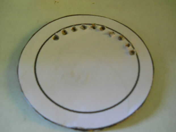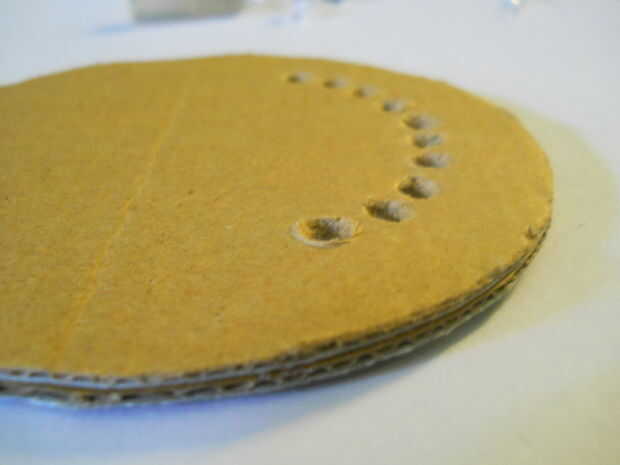 Una vez que lo hecho, usando una dremel o unas tijeras hacen 10 agujeros a lo largo del círculo. Asegúrese de que son sólo lo suficientemente grandes como para que los LEDs encajar perfectamente en los agujeros.