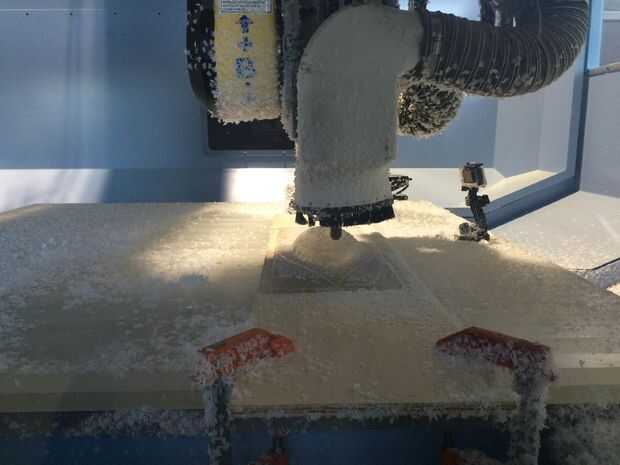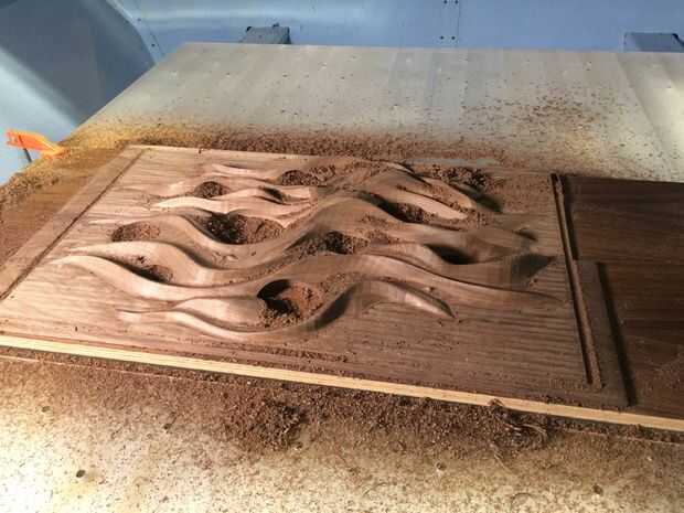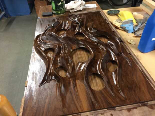 Flip-muele la nuez y el acrílico, enrutamiento los detalles interior esféricos por un lado, entonces las gran características externas en el otro.