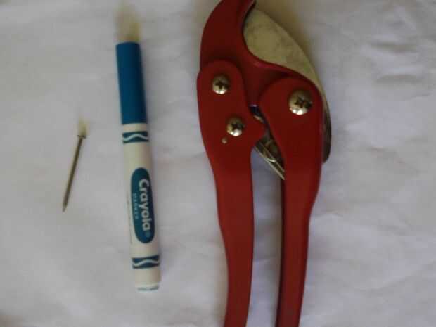 Necesita un marcador, un pequeño clavo y cualquier tipo de dispositivo de corte (yo usé cortatubos).