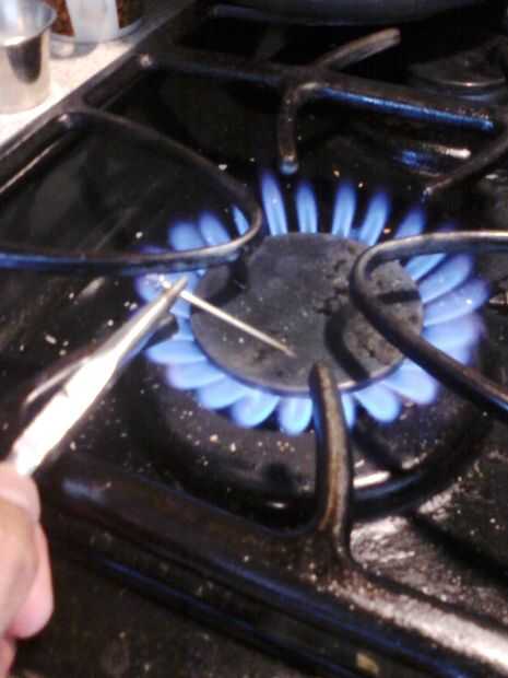 Calentar el clavo. Usé pinzas para sostener el clavo porque se calientan.