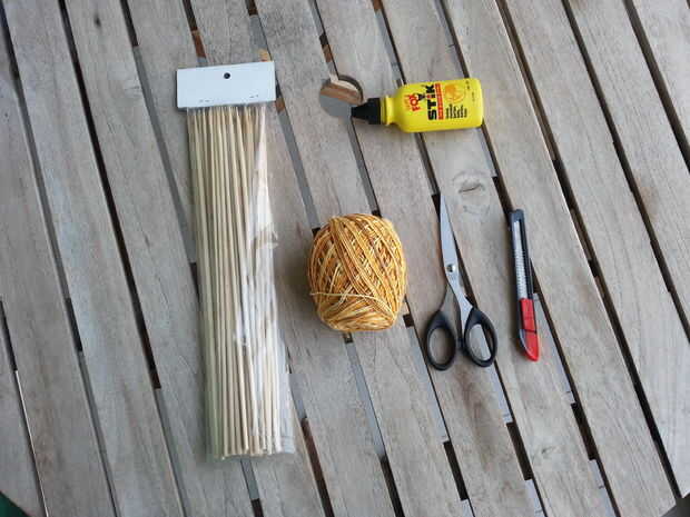 Tengo algunos pinchos de bambú para barbacoa. Puesto que el bambú no absorbe el líquido, por lo que he modificado. Puede utilizar cualquier stick que tienes, cualquier cosa que se adapte a la forma y tamaño.