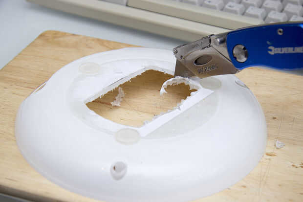Que funcionó mi cuchillo alrededor del borde del contorno original era realmente fácil de empujar el cuchillo para recortar el exceso a la forma correcta.
