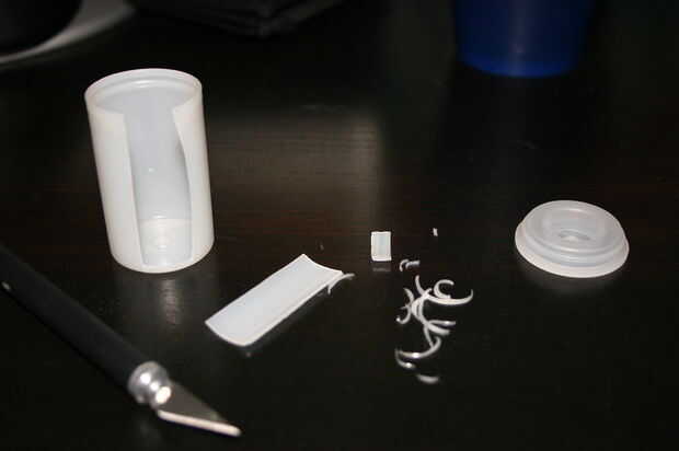 Esto es realmente lo único que tienes que hacer y fácil, corte una ranura en su bote a sólo lo suficientemente grande como para que su pop-up flash para encajar perfectamente en.