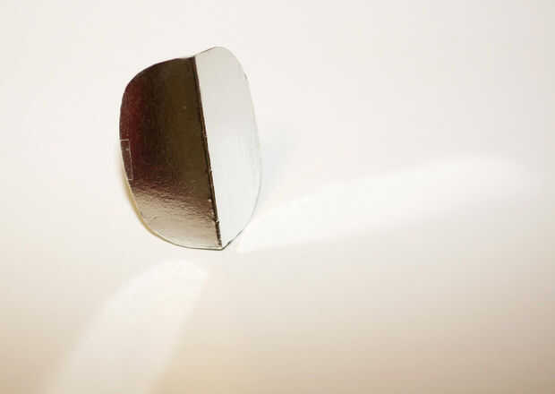 Este reflector tiene que ser doblado en un ángulo de 90°, para que refleje luz al interior de las paredes del recipiente. Para encontrar la forma correcta que tienes que probar con una hoja de papel, corte algunas formas hasta encontrar el derecho. Si usted quiere tener un snoot de rejilla de paja también, este reflector tiene que permanecer en el lugar solo, así no habría de serlo ser demasiado flojo.