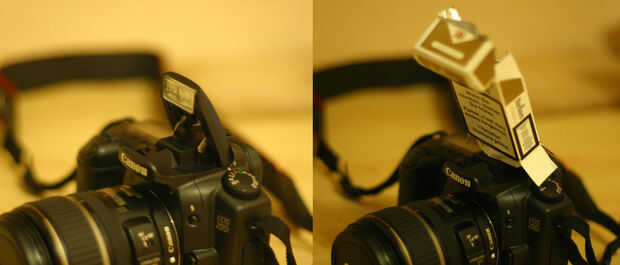 Siéntase libre ajustar el ángulo de la tapa del paquete, para variar el ángulo de la extensión flash. También, experimentar con la posición de la caja. Inversión de la caja también puede ayudar.