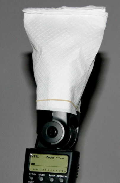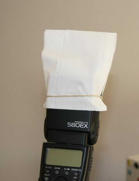 En cualquier caso, sólo asegúrese de envolver libremente y deje suficiente tejido para formar un difusor. Cuando se utiliza un estroboscopio, evitar cubrir cualquier luz infrarroja o el sensor (en mayores luces estroboscópicas de auto)