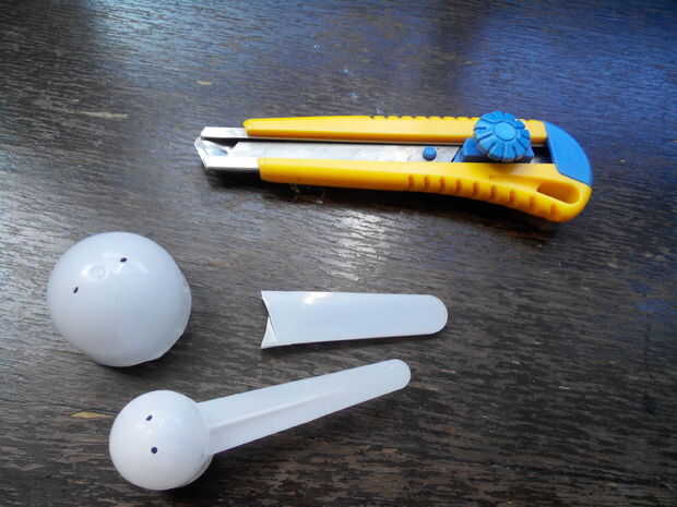 Obtener algunas cucharadas de leche en polvo, detergente etc. Cortar los mangos.