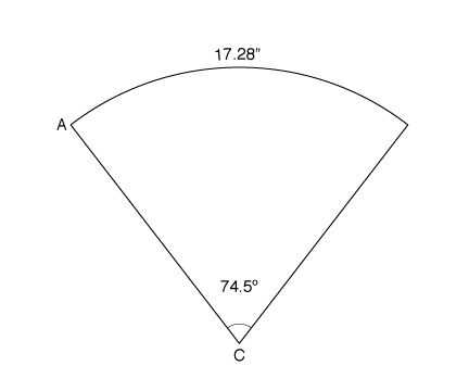 Sabemos que la longitud del arco del cálculo anterior (paso 3), y el radio es la dimensión de AC de la rebanada de pizza, el radio del cono desplegado, no el radio de la luz del techo.