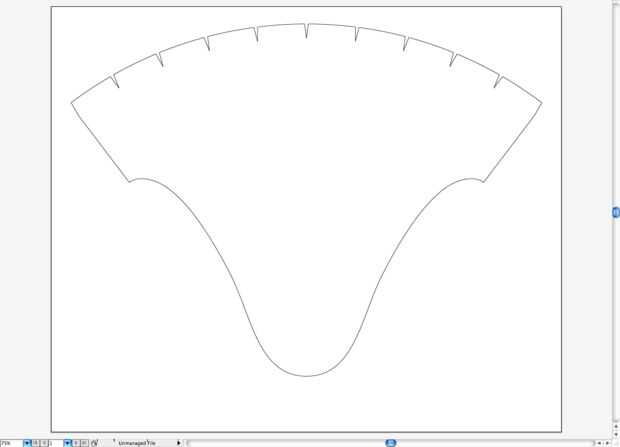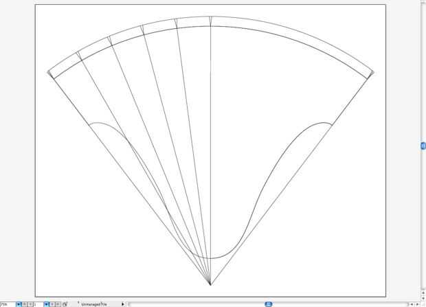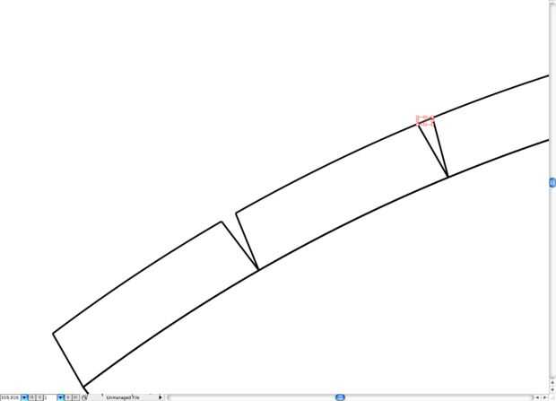 - Dibujar algunas muescas a lo largo del arco. Estos serán las lengüetas de montaje. Sugerencia: una manera fácil a la posición de las muescas es dibujarlos en o el extremo derecho o izquierdo del arco, luego copia-rotarlas desde el punto de centro del arco de 1/10 de los grados de la extensión total del arco. por ejemplo. 74.5º / 10 = 7.45º.