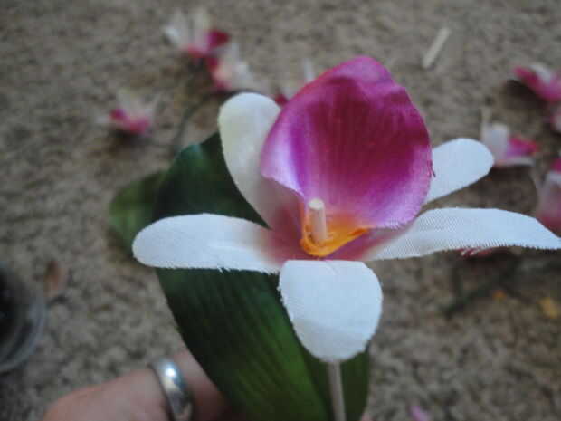 -pegamento o pistola de pegamento caliente (si tus flores son demasiado pequeñas para la caña que tenga pegamento)