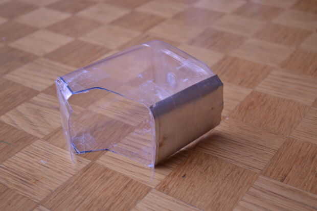 5. botella cortada forma para caber el sb-400. Tira de aluminio pegadas a la parte trasera del difusor.