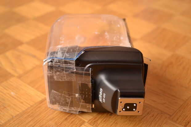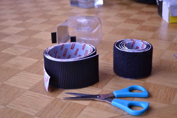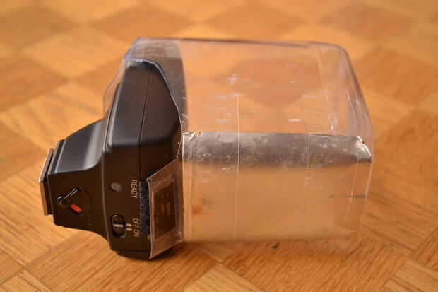 6. de velcro unida a los bordes de la botella y al flash. Recuerda poner el "peludo" lado del velcro para el flash por lo que no se pegue a la caja cuando se pone.