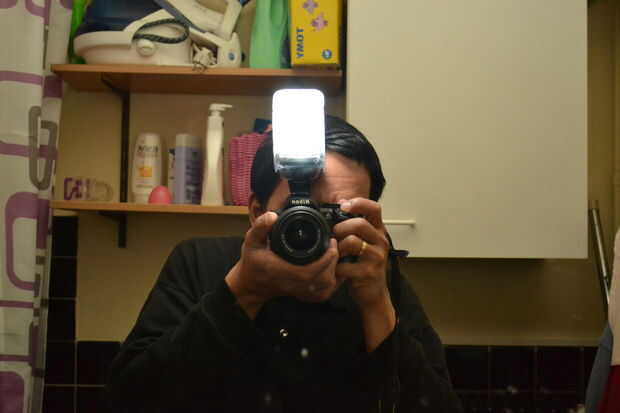 1. la primera foto muestra que el disparo de prueba de con el difusor Conecte al flash. Donde más a prueba mejor que el cuarto de baño: luz apagado, cerca de la puerta.