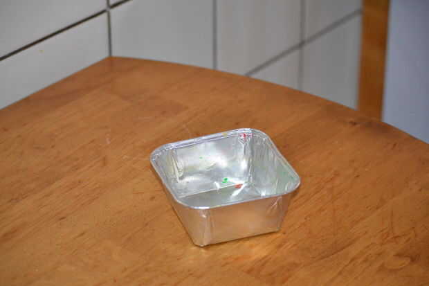 4. botella corte justo encima de la etiqueta del producto. Aluminio cortado a la anchura de lo que sería la parte trasera del difusor de la tira.