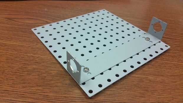 Coloque el montaje del motor en la tercera fila de agujeros de un lado de la plataforma. Fijar con dos tornillos de uno de los Kits de Hardware HW #1.
