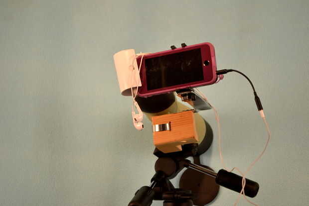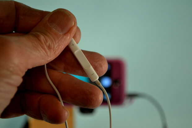Más el artículo Ve el movimiento de cámara más importante. Usando el interruptor de volumen en el oído yemas funciona como un disparador. Desde el teléfono celular está en una caja estanca es necesario enroscar un cable para conectar los audífonos.