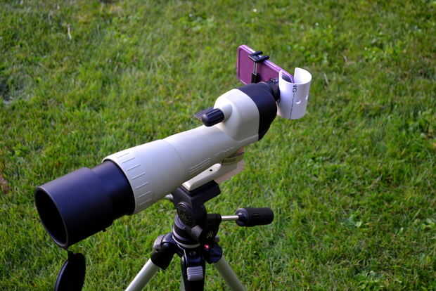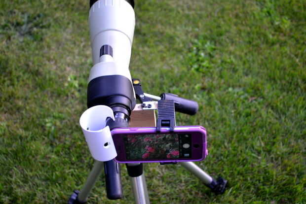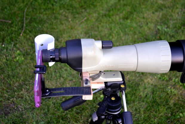 Como la mayoría de los proyectos esto evolucionó como lo utilizado. Necesitaba tener el teléfono de desplazamiento a la derecha y hasta hacer el lente de la cámara línea para arriba con el ocular en el telescopio. Las fotos explican mejor que mil palabras.
