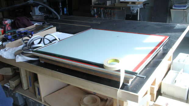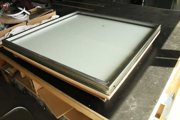 El vidrio debe tener térmico burletes (tiras de adhesivo de neopreno) de 1/2" por un lado y 1/4" en las otras siguientes un perímetro apenas tímido del perímetro trazado por la cinta de doble cara. El voladizo es necesario para asegurar un cierre hermético en el límite de la célula cuando sujeta y bajo presión.