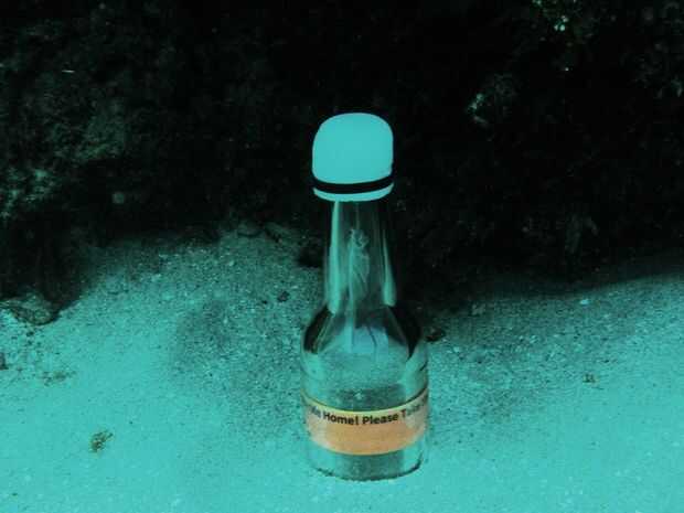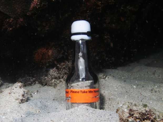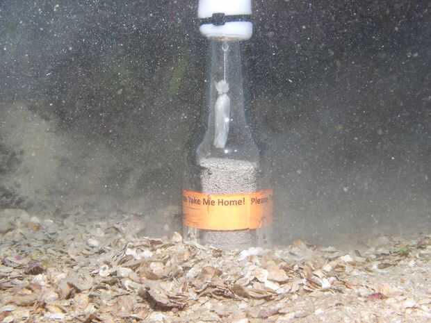 Encontrar un agradable Arenal para dejar las botellas. Recuerde a enterrarlos lo suficientemente profundo en el océano como para proteger de sobretensiones y profundidad suficiente en la arena que no se mueven.