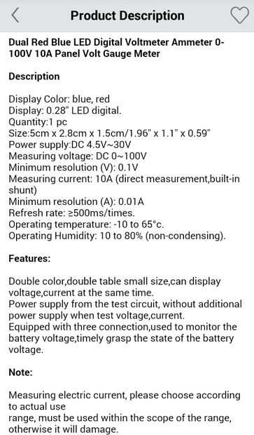 * digital tensión y módulo de panel actual. capaz de trabajar desde la fuente de 12v y medir hasta 100volts DC 10 amperios. Cuando recibí las minas fue clasificada en etiqueta engomada lateral como 40v/10a.