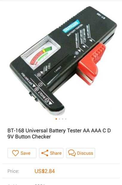 * probador de la batería analógica de donantes barato (para el caso).