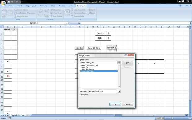 5. cuadro de diálogo en el asignar Macro en el nombre de la Macro "Sheet1.Reset_Click" haga clic en "OK".