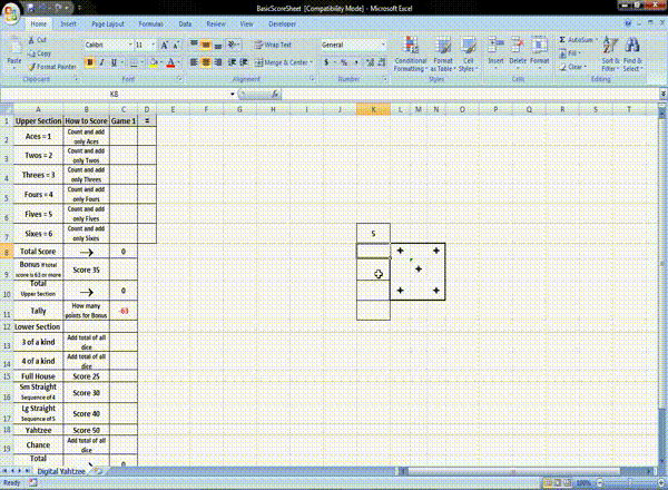 16. mover a celular "K8" y escriba cualquier número del 1-6, esto pondrá a prueba si el número en la celda "K8" coincide con las ubicaciones de punto que ves en el dado.