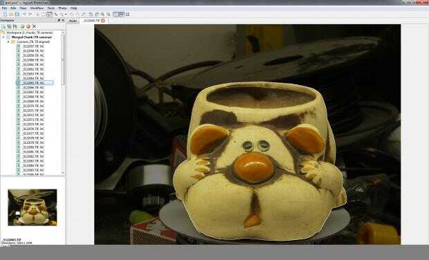 Con otra serie de imágenes alrededor del agujero y la iluminación apropiada debería ser posible desaparecer los artefactos sin editar, dando por resultado un modelo más exacto.