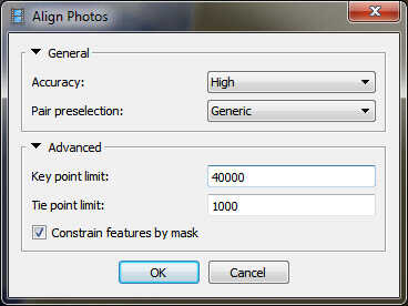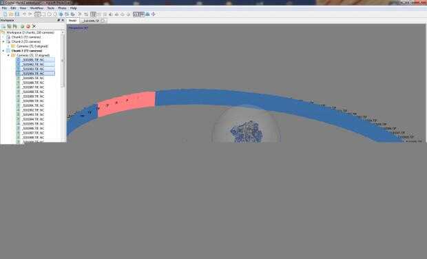 Siguiente paso de la magia es alinear los trozos juntos, así que en lugar de alinear las imágenes dentro de un trozo alineamos los trozos completos uno contra el otro - esto nos da la información 3D y cam lugares dentro del área de toda la obra.