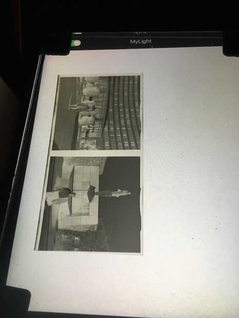 La idea era utilizar la luz incluso proporcionada por tablet de mi mujer para el desarrollo de los negativos. Primero intentaron sólo tiene que colocar los negativos en la parte superior del tablet. Funcionó bastante bien pero cuando usted magnifica las imágenes se podían ver los píxeles del sangrado a través de la tableta. Necesitaba difundir la luz sin reducir demasiado.