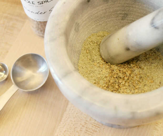 * Si como yo, no tienes una amoladora de la especia, moler las semillas a un polvo con un mortero y una maja antes de añadirlos a la cuisinart.