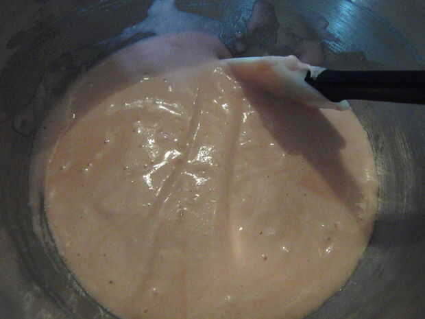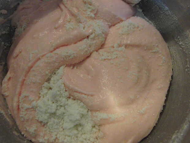 Con una espátula de goma, suavemente doblar en la mezcla de azúcar (un poco a la vez) hasta completamente incorporado. Sugiero alternando entre plegable y raspar los lados.