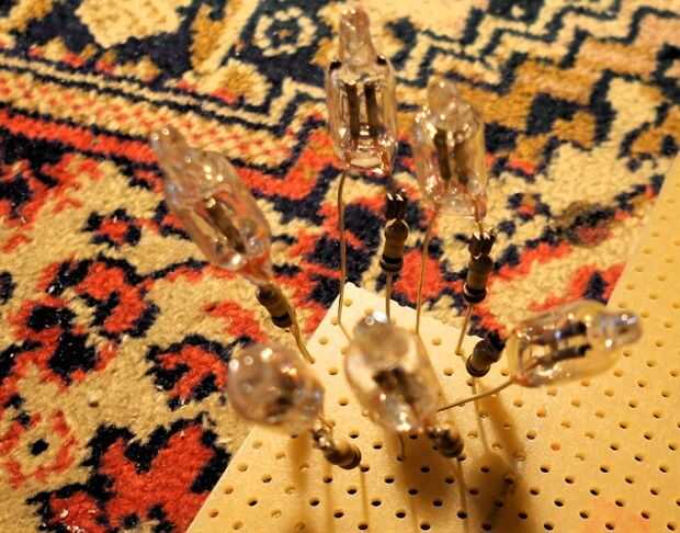 Ahora tome el panel perfboard. Limitar las bombillas de neón (7-9 Uds. son el ideal) y tratar de localizarlos en un pedazo de panel para satisfacer los criterios siguientes: