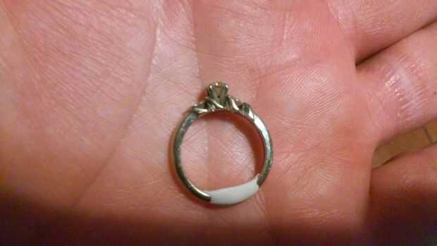 Ordené mi SUGRU del sitio web de Amazon. Esta es la primera vez que lo había usado nunca y me sorprendió gratamente. He seguido las instrucciones en el paquete y había amasada en forma de bola. Luego pellizca apagado de una pequeña cantidad y ruedan sobre la parte inferior del anillo.