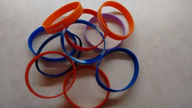 En Fábrica de Eureka, participar y exponer en muchos eventos de la comunidad, primeros torneos y conferencias profesionales y convenios. En todos ellos, pulseras de goma silicio marca son botín común, distribuida como mucho, si no más, tarjetas de visita. Después de un tiempo, acumulan. Los encontramos en cajones, en escritorios, en el piso cuando el gato encuentra uno y en varios rincones y grietas en el coche.