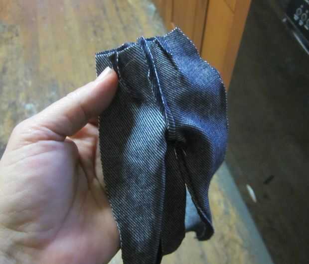 Ahora doblar el pantalón para que los lados del derecho juntos y alineen las costuras exteriores como en la segunda foto