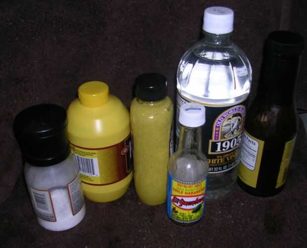 me gusta muchos estilos de salsa BBQ, vinagre base de tomate y mostaza base, esto es realmente una combinación de todos y fue creado originalmente por ser frugal. Chozas BBQ más darán un montón de salsa bbq para comida para llevar, no quiero tirar las sobras, pero esos pequeños vasos de plástico no almacenan bien. Tenía una botella casi vacía de mostaza amarilla que pensé Qué diablos... después de agregar la salsa de barbacoa a la mostaza que probado el resultado, no malo pero... un poco más vinagre, algunos más oscuro y amarillo mostaza picante y por último un poco de hot salsa... hhmmm que no está nada mal! Desde esa idea original que Ive también hizo "la salsa" con tomate embotellada en salsa bbq. Lo sentimos hay no hay medidas, todo por gusto