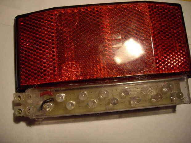1. construir y conectar la luz de la cola. 2. Fije la luz trasera (pegué mina bajo el reflector trasero luz) 3. Fije el cable de alimentación en el marco de la bici (por ejemplo con ataduras de cremallera) o tirar throuh marco en lugar de alambre viejo.