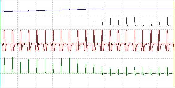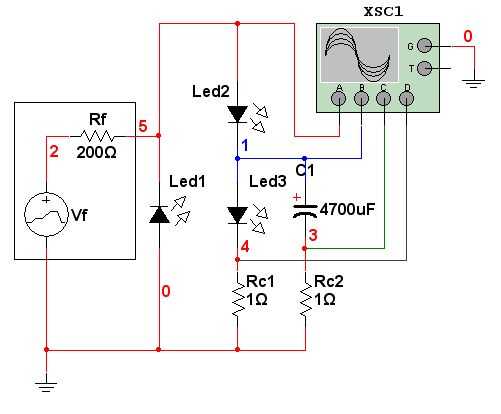 Lamentablemente no he podido conseguir Led3 para tener una conducción continua en simulaciones, aunque sucedió siempre en el circuito real. Tal vez es porque no he usado ningún inductores en mi modelo de bobina.