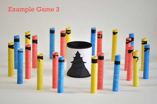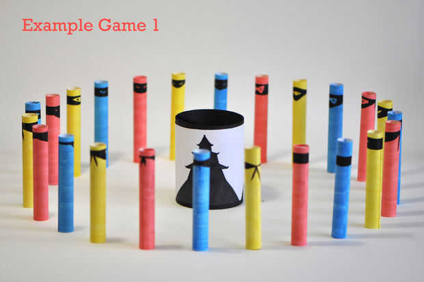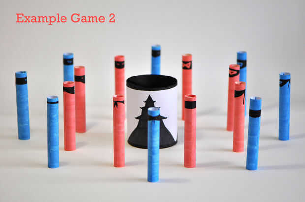 Dos o más jugadores cada uno eligen un color de ninjas y tratan de matar indirectamente por golpear a los ninjas rojos primero. Los ninjas rojos se ponen detrás después de ser utilizado cada vez. Un jugador gana una vez han muerto todos los ninjas del color que escogió. Los jugadores restantes pueden continuar hasta que quede solamente uno.