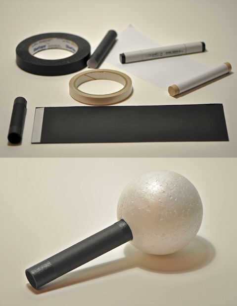 Fije el "cuerpo de ninja" (cilindro de papel) en el agujero de la "head ninja" (bola de la espuma) hecha en el paso 1. Ajustar el espesor de la cinta si es necesario.