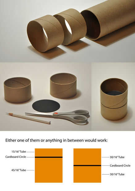 Apilar los dos tubos junto con el círculo de cartón en el medio como se muestra en la imagen. Alinear y pegar.