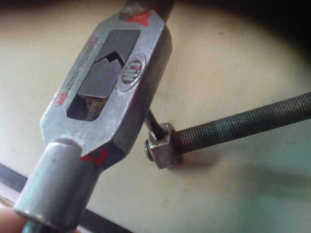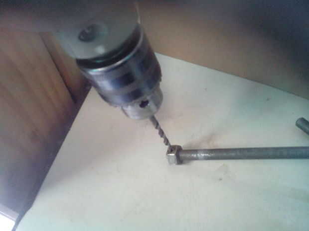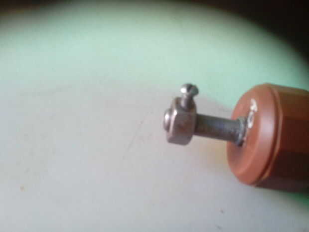 Apriete la tapa de todos a través de la forma y el tazón de fuente con un destornillador, entonces tenemos un mango giratorio