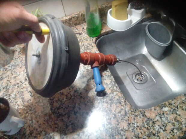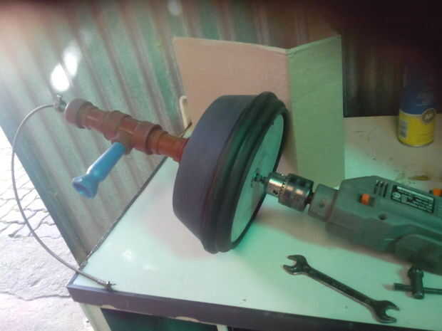 A continuación, usted puede girar el dispositivo de manija o taladro, meanswhile introducción de la serpiente en el tubo obstruido
