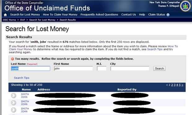 Paso 3: Refina la búsqueda a ver si hay alguna no reclamados dinero para usted