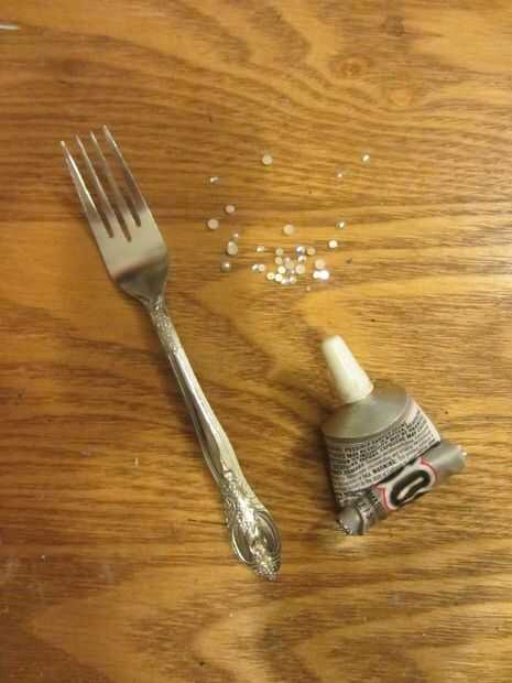 Tenía la planas perlas y diamantes de imitación de una vieja caja del teléfono celular, pero estoy seguro de que podría conseguirlos en su tienda de artesanía local. Yo la horquilla de $1 para un paquete de 4 en Wal-Mart o Dollar Tree, que no puede recordar.