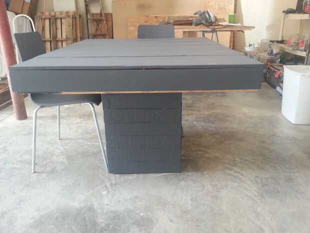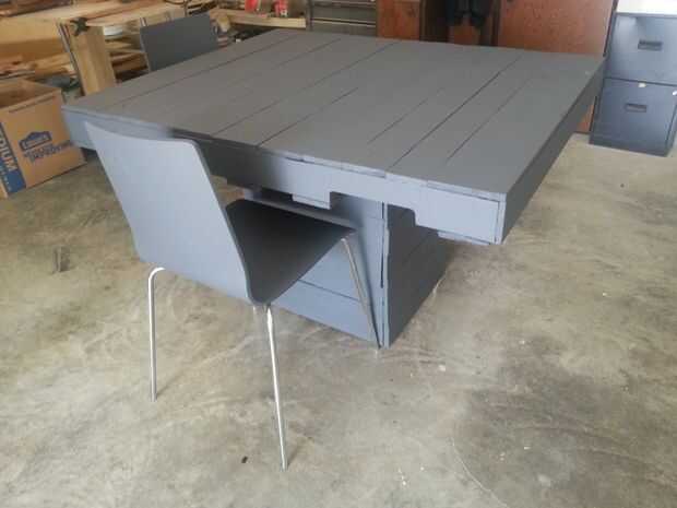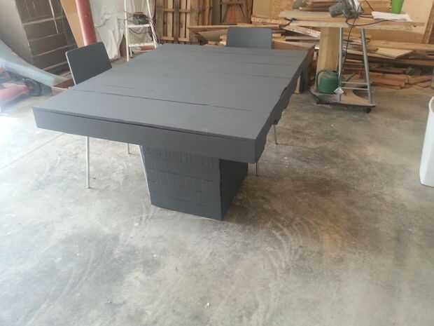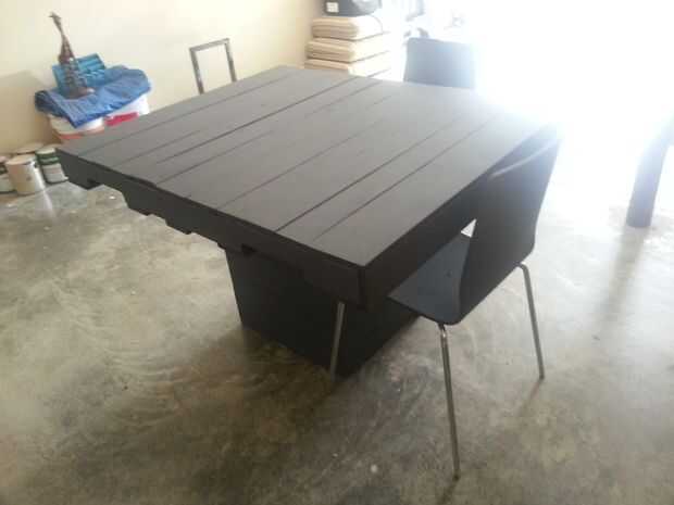 Esta tabla fue producida en mi clase de diseño de producto. Esta es una idea sostenible como paletas están hechas de materiales renovables y se pueden encontrar y reunidas de cada polígono que reduciría los residuos destinados a vertedero. También pu